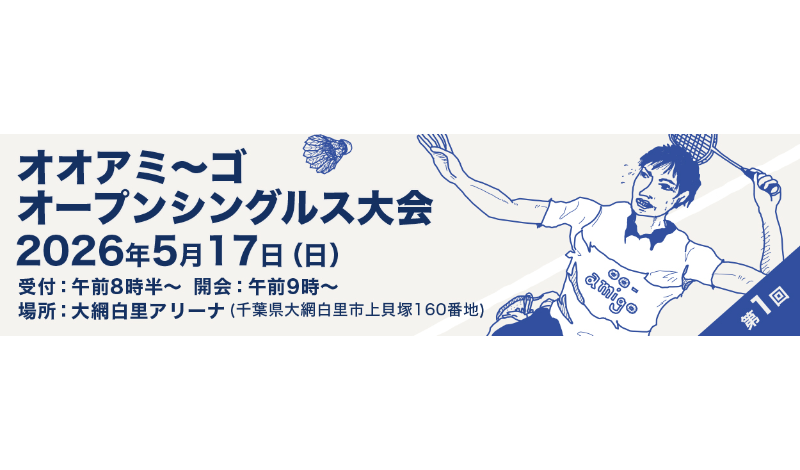 社会人が参加可能なシングルスのローカル大会が少ないことから、シングルス好きな人達のための試合をやろうと企画しました。千葉県の外房にある大網というちょっと田舎になりますが、シングルスをやりたくてうずうずしている方は、是非ご参加ください!!